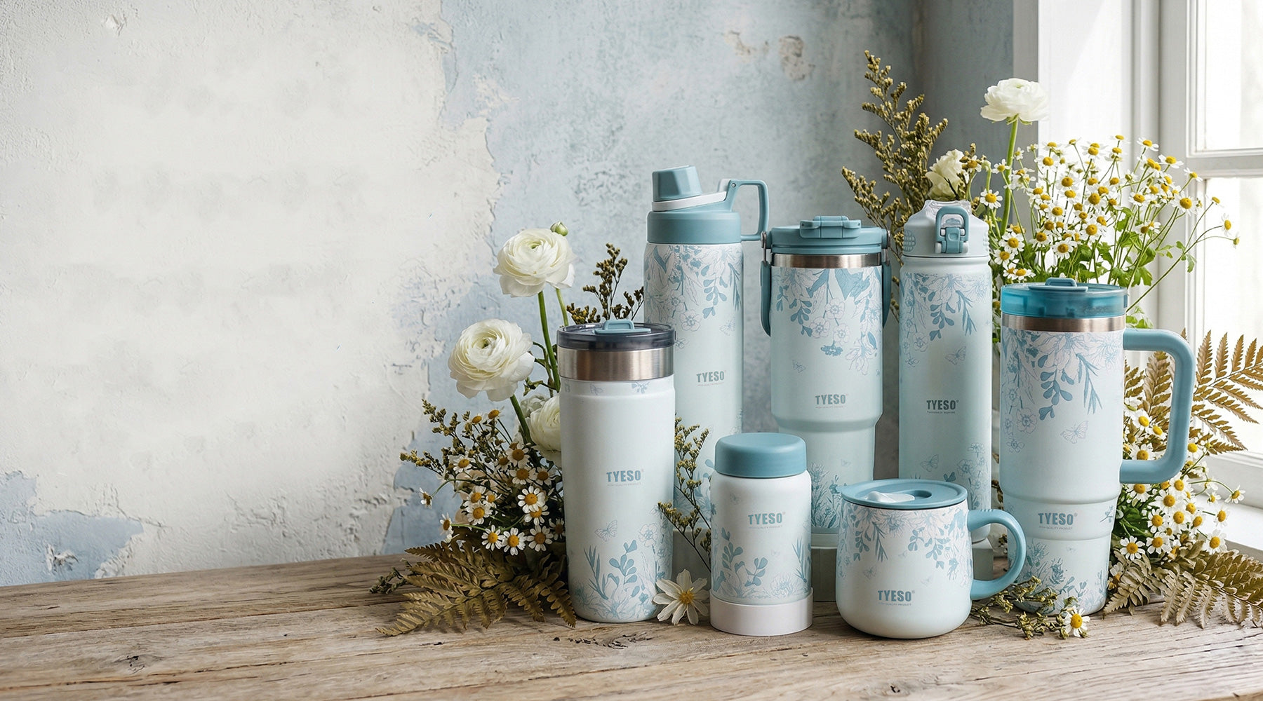Discover Blush, Mist, and Veil — three floral finishes across coordinated drinkware styles for different moments of the day.