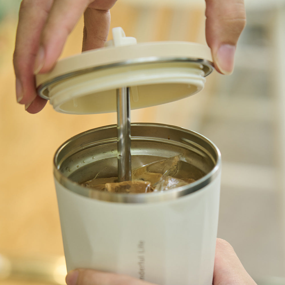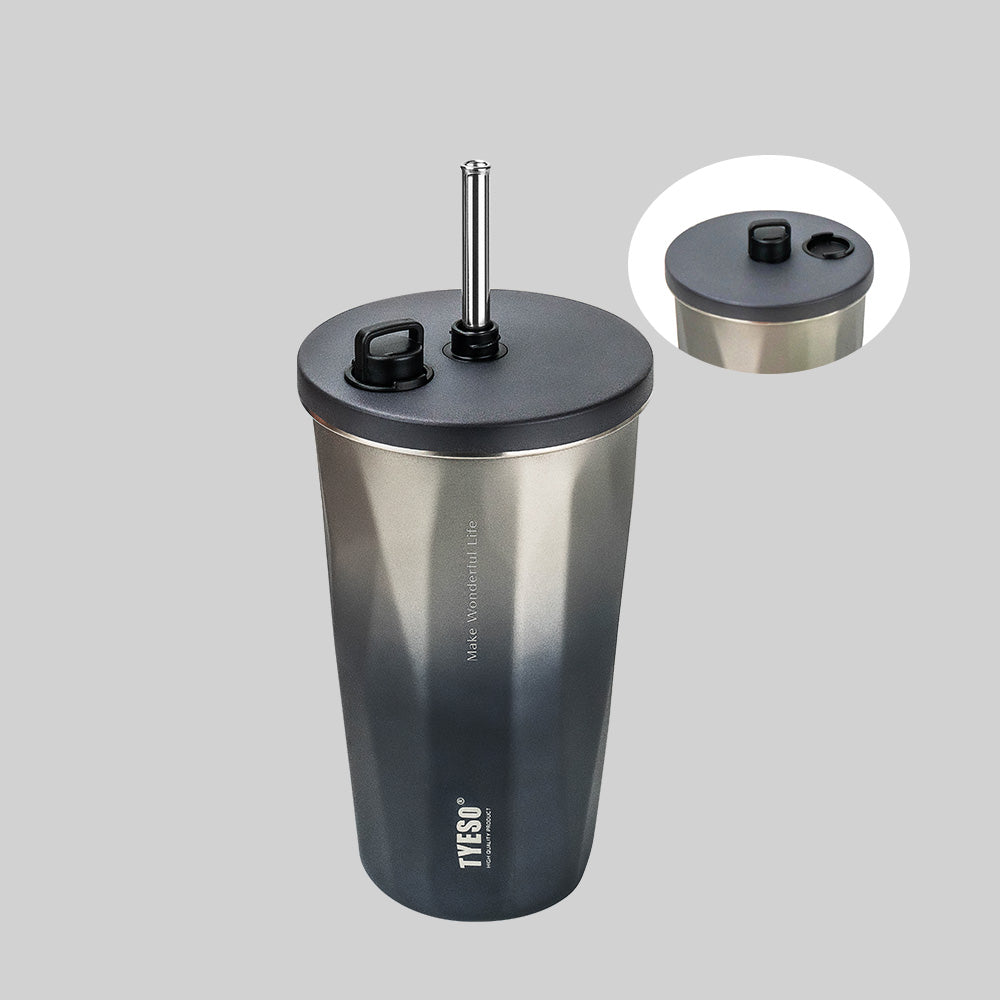 - Included: 2 reusable straws + twist-on flip lid