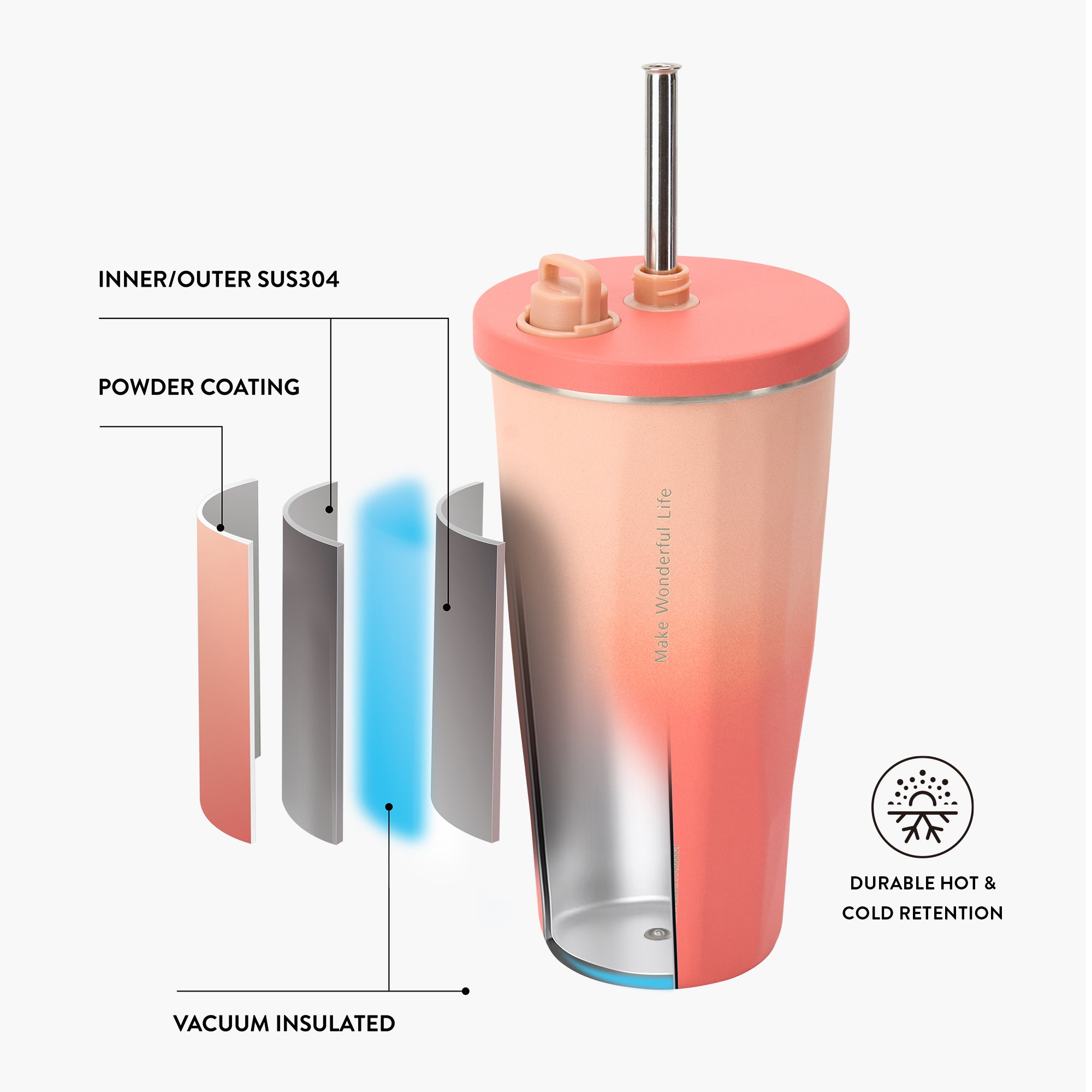 - Innovative Lid Design: The innovative lid features a retractable straw and a portable silicone handle strap, making it easy to carry and drink from on the go.