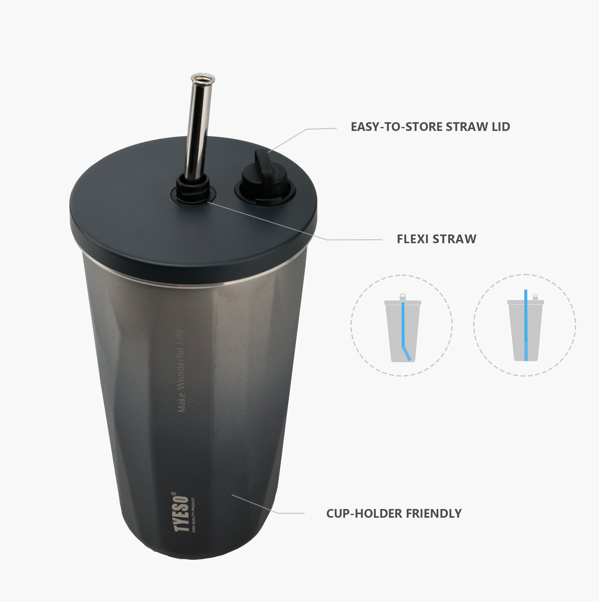Meet the Tyeso FLAIR Tumbler, designed for the modern lifestyle. Whether you're commuting, traveling, or simply enjoying a day out, this tumbler ensures your favorite drinks stay at the perfect temperature while offering unmatched convenience and style.